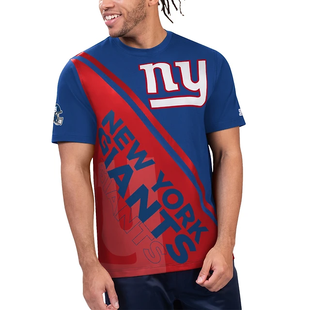 T-shirt Starter Royal/Rouge pour hommes, ligne d'arrivée des Giants de New York