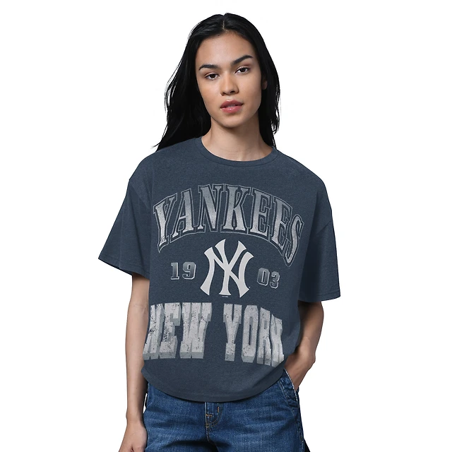T-shirt surdimensionné pour femme, bleu marine chiné, des Yankees de New York, avec le logo du Temple la renommée