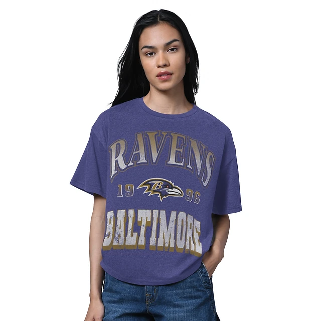 T-shirt surdimensionné violet chiné pour femme des Ravens de Baltimore, symbole du Temple la renommée