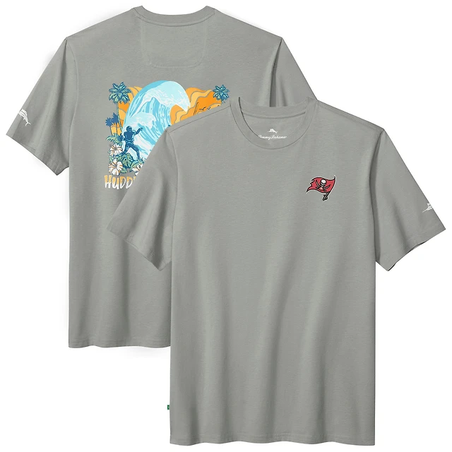 T-shirt Tommy Bahama gris pour homme des Tampa Bay Buccaneers Huddle & Hang Tens