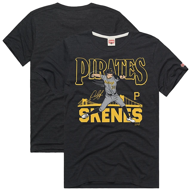 T-shirt tri-blend graphique gris anthracite pour homme, hommage à Paul Skenes, joueur des Pirates de Pittsburgh