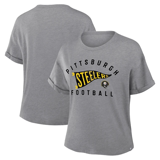 T-shirt tri-blend hommage fanatiques gris chiné des Pittsburgh Steelers pour femme
