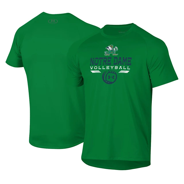 T-shirt Under Armour vert à manches raglan pour homme, motif Notre Dame Fighting Irish Volleyball Icon