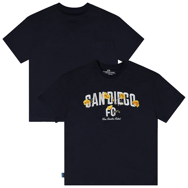 T-shirt unisexe à imprimé floral bleu marine du San Diego FC Live Breathe Futbol