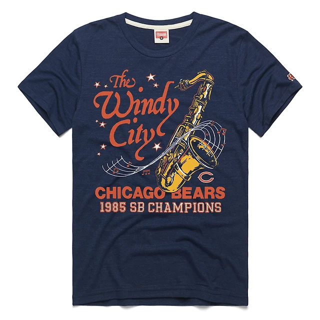 T-shirt unisexe bleu marine hommage aux Chicago Bears, champions du Super Bowl XX, Windy City