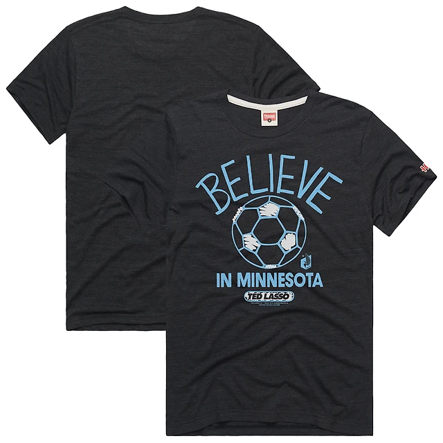 T-shirt unisexe gris anthracite hommage Minnesota United FC MLS x Ted Lasso Believe Graphic Tri-Blend