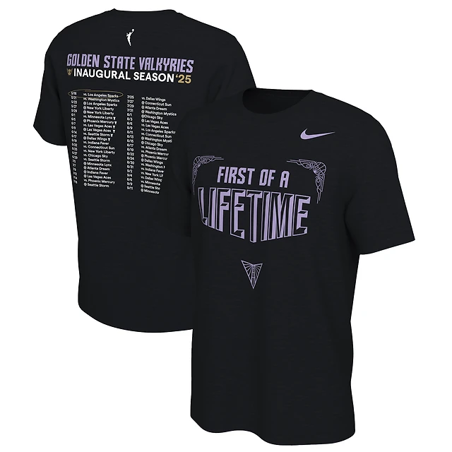 T-shirt unisexe Nike Eclipse noir Golden State Valkyries 2025, saison inaugurale, premier d'une vie, calendrier