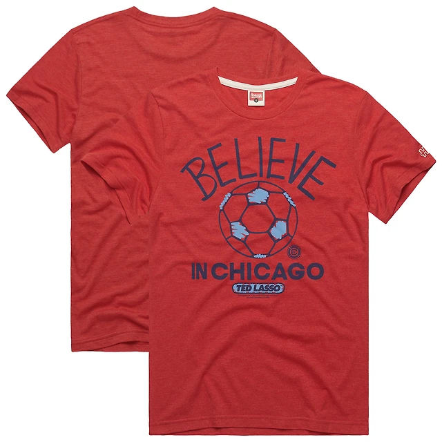 T-shirt unisexe rouge hommage Chicago Fire MLS x Ted Lasso Believe Graphic Tri-Blend