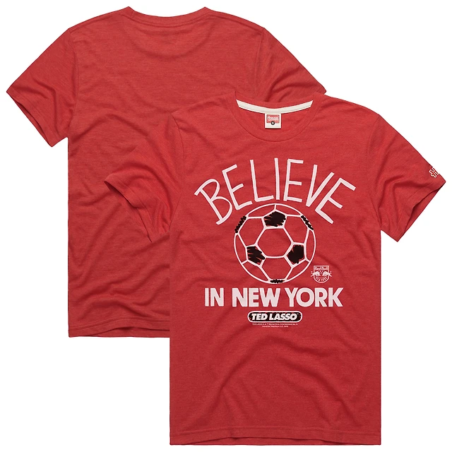 T-shirt unisexe rouge hommage New York Red Bulls MLS x Ted Lasso Believe Graphic Tri-Blend
