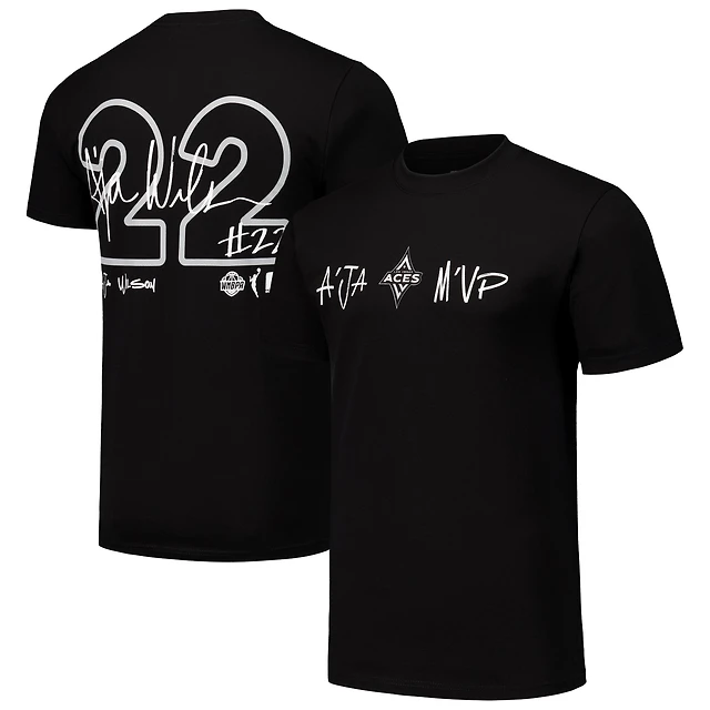 T-shirt unisexe round21 A'ja Wilson noir Las Vegas Aces Player Signature nom et numéro