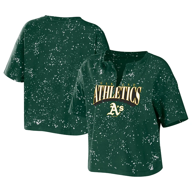 T-shirt vert à col cranté et teinture par nouage WEAR by Erin Andrews pour femme des Oakland Athletics