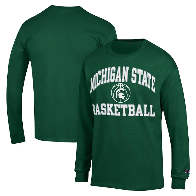 T-shirt vert à manches longues Champion Michigan State Spartans Basketball Icon pour hommes