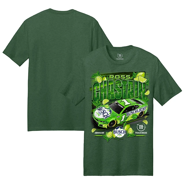 T-shirt vert chiné pour homme de la collection Trackhouse Racing Team, Ross Chastain Busch, citron clair.