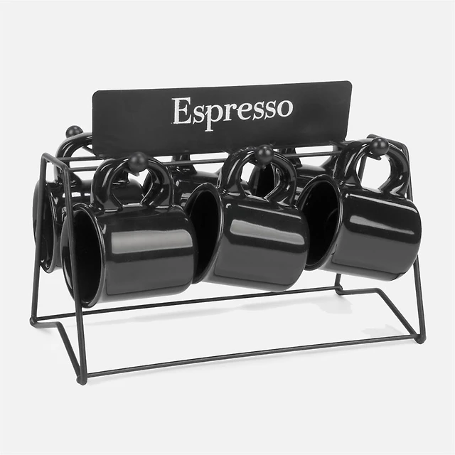 Tasses à Espresso et support, ensemble de 6 - Noir mat