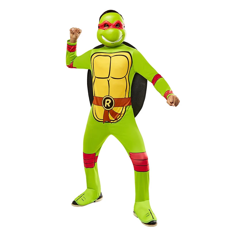 Your tyke will be looking fierce and powerful as ever this year when you get them all dressed up in our Teenage Mutant Ninja Turtles Boys Raphael Costume. With this set, you will receive everything your child needs to become their favorite rage-filled turtle who knows a thing or two about slaying foes. Featuring a green ninja turtle printed jumpsuit with attached boot covers, as well as a 2D turtle shell and a red eye mask, your kid is going to be feeling cool as ever while sporting this killer look.