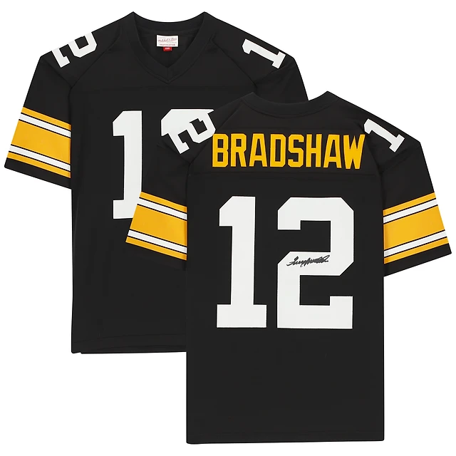 Terry Bradshaw Pittsburgh Steelers Autographed Mitchell & Ness Throwback Black Replica Jersey