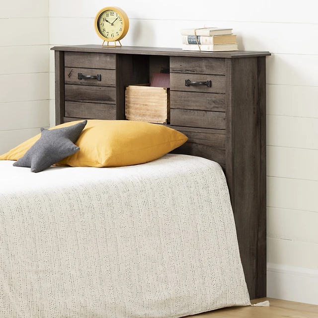 Tête de lit bibliothèque simple Ulysses avec rangement et portes coulissantes - Brun
