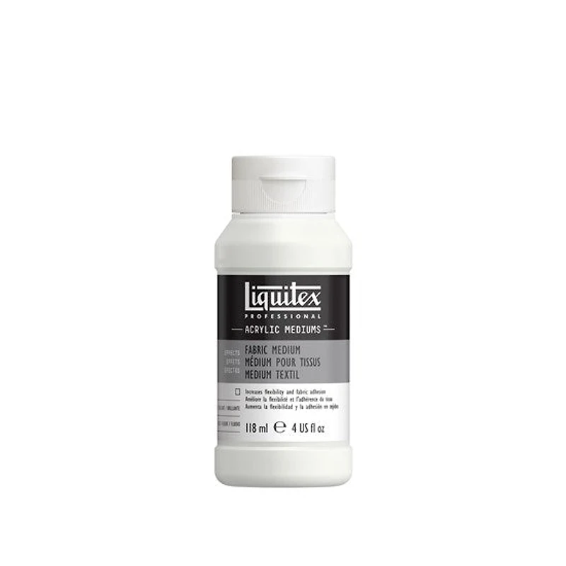 Liquitex Fabric Medium lets you use acrylic colour on textiles, without cracking or bleeding. It makes paint more adhesive, flexible and workable on all kinds of textiles. It prevents colour bleeding into fabric weave and lowers viscosity of heavier body paints, giving increased flow. Tips: