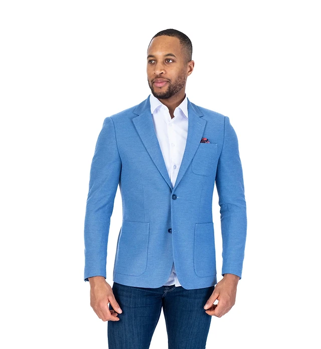 Denim Double-Breasted Blazer & Patch Pocket Wide-Leg Jeans