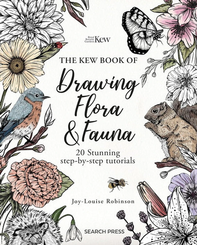Learn to draw stunning flora and fauna in easy steps with popular author and teacher, Joy-Louise Robinson (@Felicityandink). Discover 20 delightful projects including flowers, insects, birds and small animals, endorsed by The Royal Botanic Gardens, Kew. Whether you are a beginner looking to learn, or a more experienced artist looking for new ideas and a fresh approach, this stunning book is designed to make drawing simple and enjoyable – and will give you results to be proud of. Joy-Louise’s distinctive and much-loved bohemian botanical style of art is inspiring to look at, but made achievable through her carefully structured step drawings and clear instructions. This complete guide to drawing contains: A brief overview of the small amount of equipment required: simply grab paper, pens and a pencil. A drawing warm-up section that will encourage you to experiment with mark-making and motion. In-depth tips and techniques in each section, from drawing accurate petal edges to creating realistic feathers and fur. Simple, easy-to follow steps, with each new step added in a different color, making it easy to identify which lines to add. A suggested color palette for each project as an optional coloured finish to your line drawings. A progression of skill: the projects build in difficulty to develop your skills and confidence as you learn. Professional insights into digitizing and then combining your individual drawings into larger pieces of art. So whether it’s a cheerful daisy, glossy beetle, majestic magpie or snuffling hedgehog, it’s never been easier to create your own beautiful array of flora and fauna. THE ROYAL BOTANIC GARDENS, KEW is a world-famous scientific organization, internationally respected for its outstanding collections and scientific expertise in plant and fungal diversity, conservation, and sustainable development in the UK and around the globe. Kew’s extensive collections include 200,000 botanical illustrations assembled over the last 200 years.