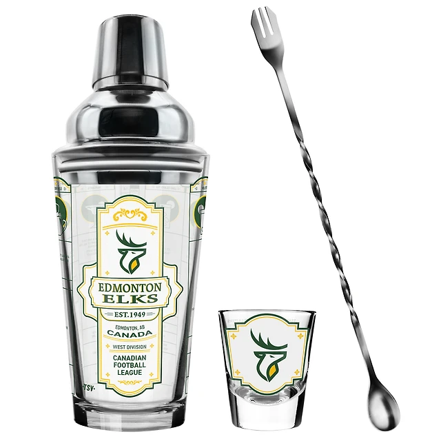 The Sports Vault Edmonton Elks Ensemble de cinq verres à shot et verres à mélange pour barman
