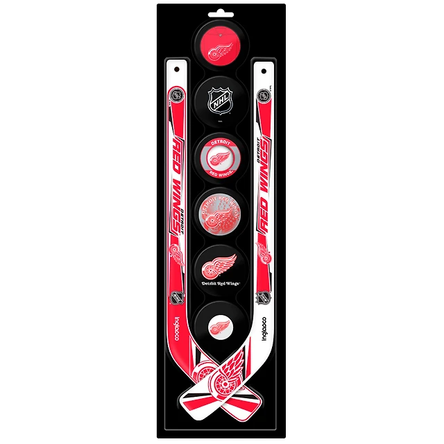 The Sports Vault Ensemble de huit mini bâtons de hockey et rondelles en mousse des Red Wings de Detroit