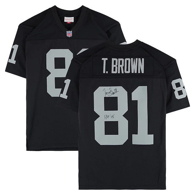 Tim Brown Las Vegas Raiders Autographed Black Mitchell & Ness Replica Jersey with "HOF 2015" Inscription