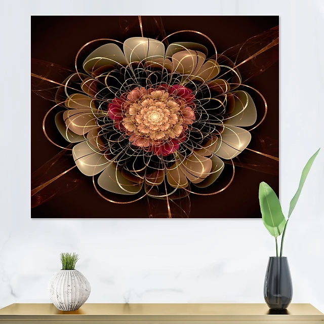 Toile « Dark Gold Red Fractal Flower Pattern »