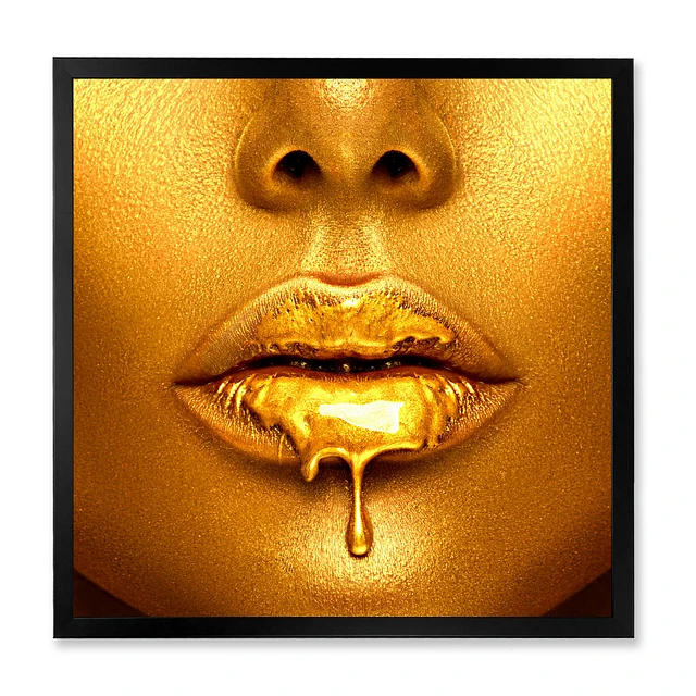 Gold Paint Drips From Sexy Woman Lips Wall Art