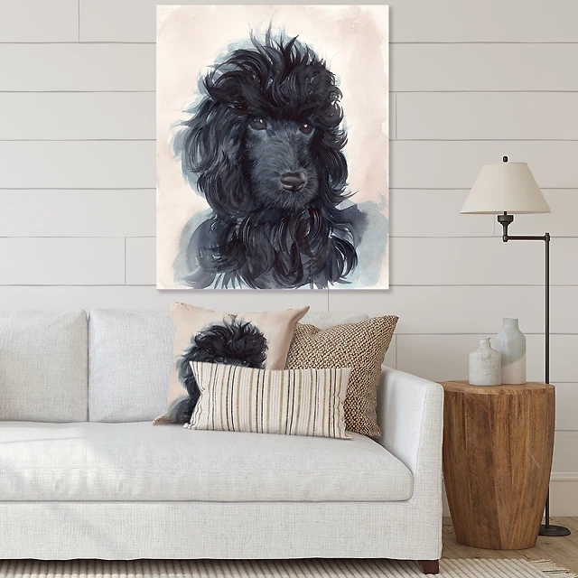 Portrait of The Black Poodle Puppy with Curly Coat Canvas Wall Art Print