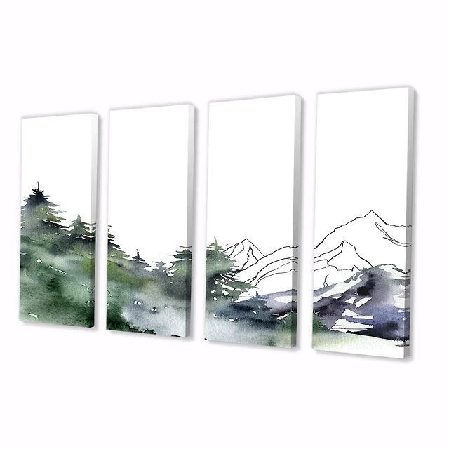 Toile imprimée « Winter Dark Blue Mountain Landscape with Trees III »