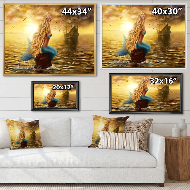 Sea Mermaid with Ghost Ship Canvas Wall Art Panels