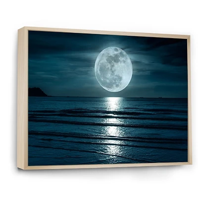 Romantic Full Moon Over Sea Canvas Art Print