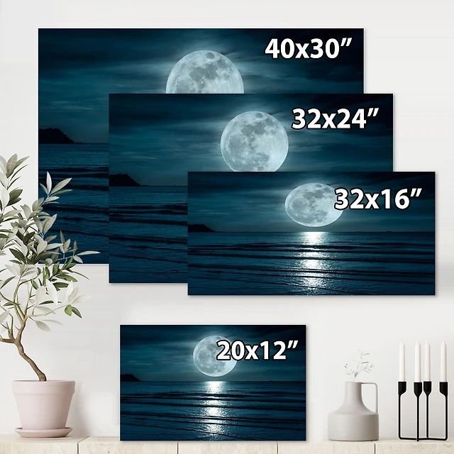 Super Moon Over The Sea II Canvas Wall Art