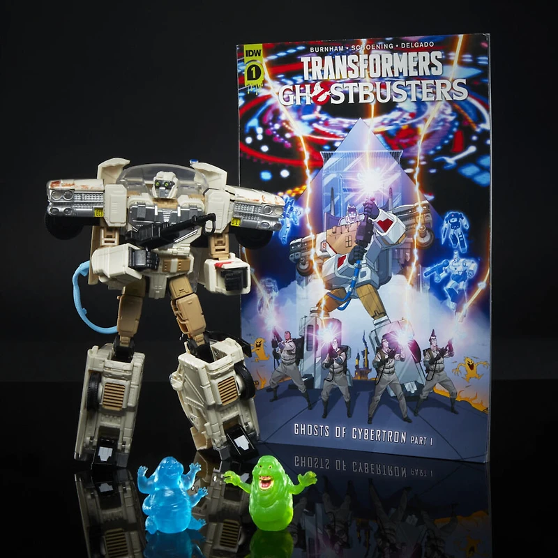 MORE THAN MEETS THE EYE: Transformers robots have always been: More Than Meets the Eye, but now, through the Transformers Collaborative, fans can experience these larger than life characters as they team-up, mash-up, and meet up with other characters, teams, and people who share this same special quality ECTO-1 CONVERTS TO TRANSFORMERS ROBOT: Convert Ecto-1 Cadillac mode to Ectotron robot mode in 22 steps GHOSTBUSTERS AFTERLIFE-INSPIRED FEATURES: The Ectotron Ecto-1 figures comes with Slimer and Muncher ghost figures, as well as a Proton Pack accessory G1-INSPIRED PACKAGING...WITH A LITTLE GHOST OOZE: Features Afterlife Tech Specs showing the capabilities of Ectotron, including strength, speed, and bust-abilty. Figure also features an updated head sculpt, including updated Ecto-Goggles inspired by Ghostbusters: Afterlife CROSSOVER COMIC BOOK: Includes a copy of issue number 1 of the Transformers Ghostbusters Ghosts of Cybertron comic book from IDW Publishing, featuring an exclusive cover R Exclusive, only available at Toys R Us Canada. The worlds of Transformers and Ghostbusters collide through the Transformers Collaborative! It's the world of Transformers...and Ghostbusters...a world of heroic Autobots, evil Decepticons...and ghosts! The iconic Ecto-1 Cadillac from the Ghostbusters: Afterlife movie is now a Transformers robot called Ectotron! The Ectotron figure converts between Ecto-1 and robot modes in 22 steps, and comes with a Proton Pack and Blaster accessories, Slimer and Muncher ghost figures, and issue number 1 of the Transformers Ghostbusters Ghosts of Cybertron comic book from IDW Publishing, featuring an exclusive cover. The figure also features an updated head sculpt inspired by Ghostbusters: Afterlife. Transformers and all related characters are trademarks of Hasbro. TM & © 2021 Columbia Pictures Industries, Inc. All rights reserved. Cadillac and all related Emblems and vehicle body designs are General Motors Trademarks used under license to Hasbro, Inc. Hasbro and all related terms are trademarks of Hasbro. Figure scale: 7 inches Includes: Ectotron figure, Slimer figure, Muncher figure, 2 accessories, and instructions. Ages 8 and up Warning: Choking Hazard - Small parts. Not for children under 3 years.