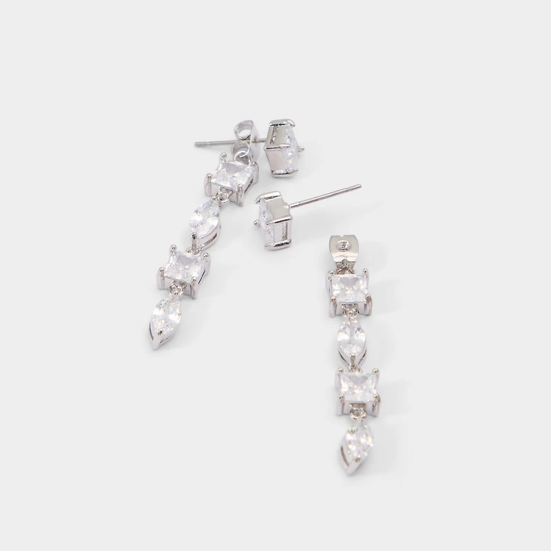 Square- and marquise-cut cubic zirconia set in gleaming silver hardware catch light with poised precision, turning a classic evening silhouette into a subtle, high-shine moment you can wear anywhere. Team them with a sleek updo for after-hours polish, or let them peek from beneath a softly draped scarf for daytime edge.