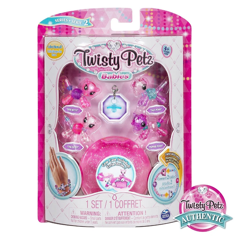 Includes: 4 Twisty Petz Babies, 1 Charm, 1 Gem Case, 1 Collector's Guide