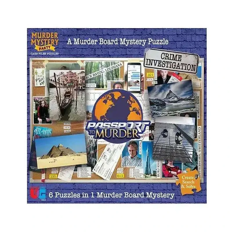 University Games Murder Mystery Passport Game 1000 Pcs Jigsaw Puzzle | In Murder Mystery Party Case File Murder Board Puzzle - Passport to Murder, you gather and construct evidence to coordinate with the central murder board to solve the crime.