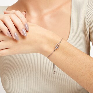 Unstoppable Love™ 0.085 CT. T.W. Diamond Interlocking Hearts Bolo Bracelet in Sterling Silver - 9.5"