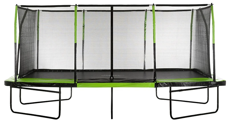This 'Upper Bounce' mega rectangular trampoline brings a park sized trampoline into your own backyard, its narrow profile making it a good choice for side yard installations. The Top enclosure design is unsurpassed in safety and durability. The heavy-duty galvanized springs provide bursting strength and maximum bouncing... definitely the Upper Bounce! This trampoline makes a great buy... for competitive jumpers, aspiring gymnasts and family fun for everyone