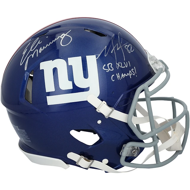 V106832 Giants Mario Manningham et Eli Manning New York Giants Casque Riddell Speed authentique dédicacé avec inscription « SB XLVI Champs » Mario Manningham, Eli Manning CASQUE AUT PRO 45824 AUTEQPHEL PHLTMA0666 #14
