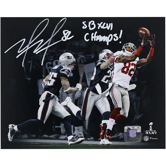 V106832 Giants Mario Manningham New York Giants Autographié 8" x 10" SB XLVI Catch Spotlight Photographie avec l'inscription "SB XLVI Champs" Mario Manningham AUT 08x10 PHOTO 45824 AUTPHO 08FBMA0195