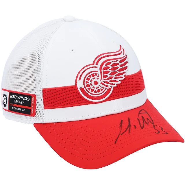 V106832 RdWngs Moritz Seider Detroit Red Wings Casquette de repêchage Fanatics blanche autographiée Moritz Seider AUT CAP 45618 AUTMER CAPSSE0030