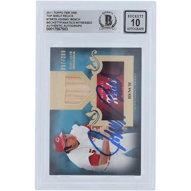 V106832 REDS Johnny Bench Cincinnati Reds Autographié 2011 Topps Tier One Top Shelf Bat Relic #TSR19 #/399 Beckett Fanatics Witnessed Authenticated 10 Card Johnny Bench AUT TPP TRADING CARDS 45666 AUTTRC CA01B00106