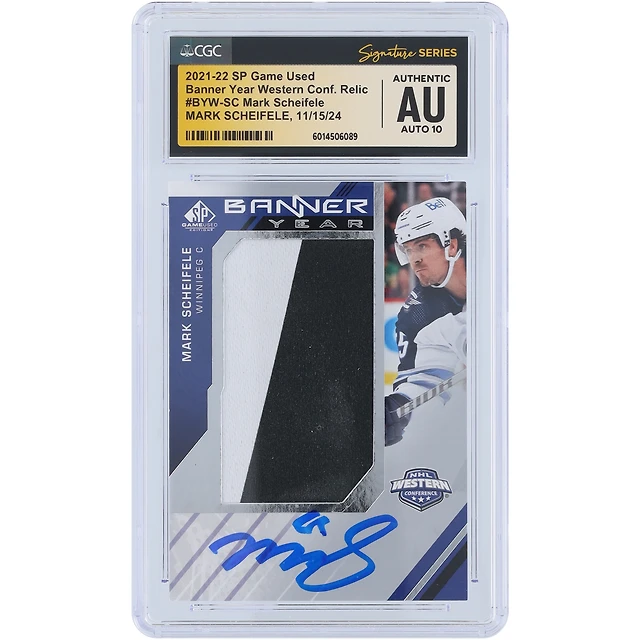 V106832 WinJet Mark Scheifele Winnipeg Jets Autographié 2021-22 Upper Deck SP Jeu Utilisé Bannière Année Conférence Ouest 2 Couleur Relique #BYW-SC CGC Fanatics Witnessed Authenticated Auto 10 Card 55 Mark Scheifele AUT UPD CARTES À ÉCHANGER 45642 AUTTRC CA01HK4450 #20