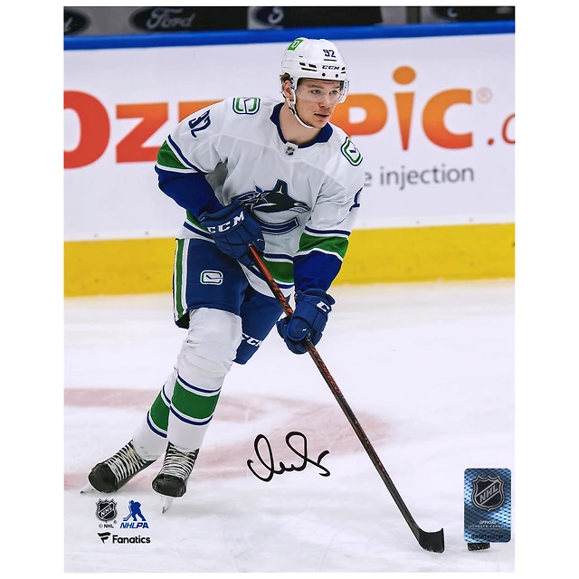 Vasily Podkolzin Vancouver Canucks Autographié 8 "x 10" Blanc Patinage Photo