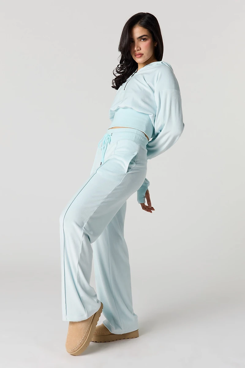 This sweatpant features velour material, drawstring waist, side slide-in pockets, exposed seam detail, and straight leg. Pair with our Velour Quarter Zip Hoodie to complete the look.