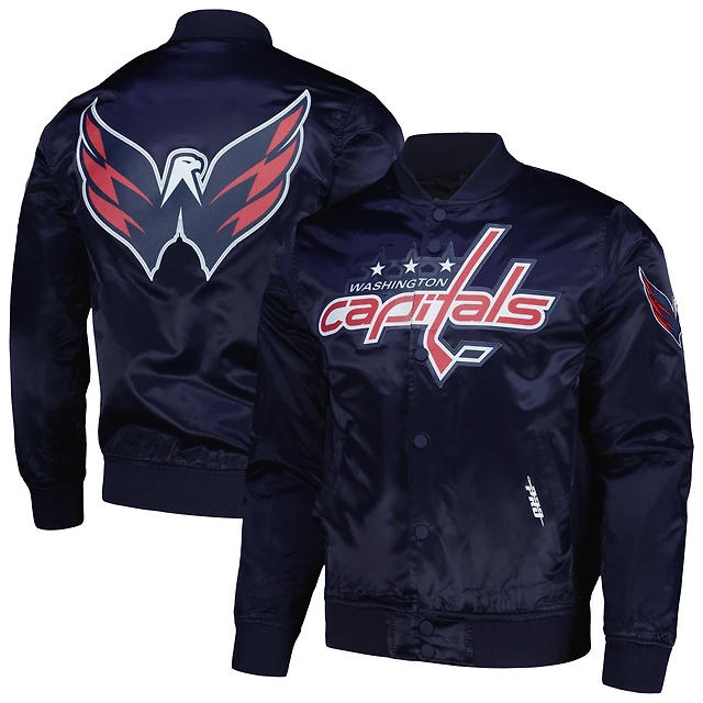 Veste à bouton-pression classique en satin pour hommes Pro Standard des Washington Capitals, bleu marine