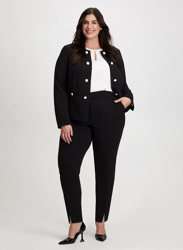 Veste à boutons nacrés et pantalon coupe Cité