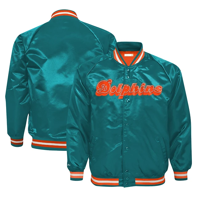 Veste à boutons-pression en satin raglan pour jeunes Mitchell & Ness Aqua Miami Dolphins